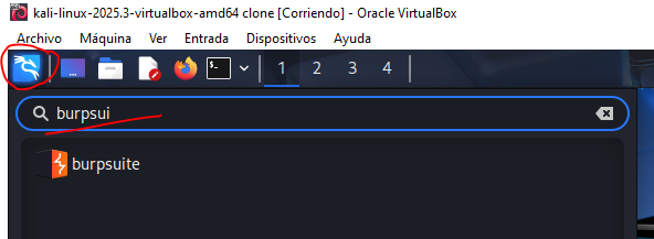Puedes ejecutarlo directamente desde consola con el comando «burpsuite» o buscándolo en la suite de herramientas de Kali por defecto: