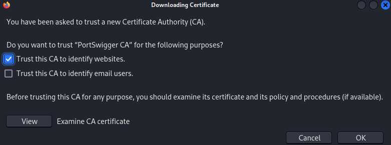 Como ultimo paso de configuración, y para que la navegación por Firefox funcione y no muestre un error, se recomienda descargar el CA Certificate de BurpSuite e importarla en las configuraciones de Firefox.