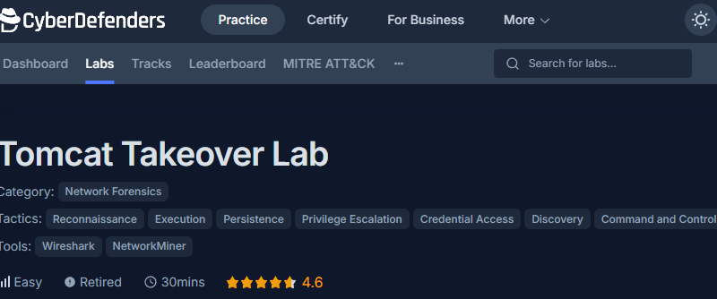 En este post vamos a resolver la máquina «Tomcat Takeover» de nivel Easy de la plataforma Cyberdefenders.org . Si quieres empezar a realizar prácticas en