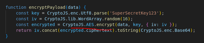 ✅ Modo de cifrado: AES con un vector de inicialización (IV) de 16 bytes, lo que sugiere el uso de AES-CBC