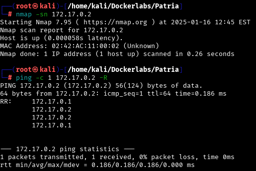 ping -c 1 172.17.0.2 -R
