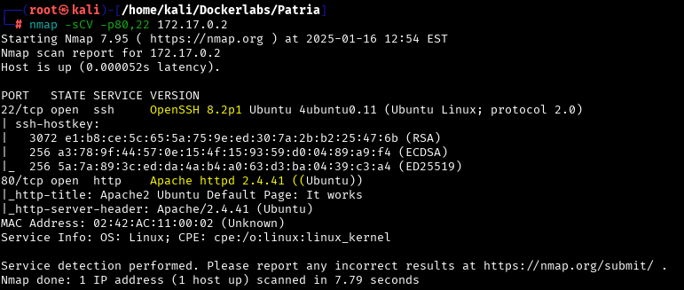 nmap -sCV -p80,22 172.17.0.2