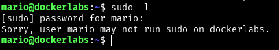No vemos archivos relevantes, y al parecer el usuario mario no tiene permisos para usar sudo…