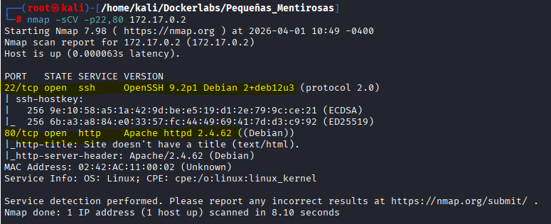 En este writeup vamos a resolver una de las máquinas de la plataforma Dockerlabs llamada Pequeñas Mentirosas, con el nivel de dificultad «Fácil».