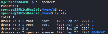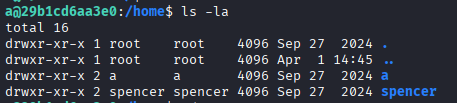 Si nos movemos al directorio «home» vemos que además del usuario «a», está el usuario «spencer».