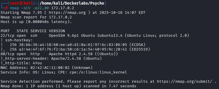 nmap -sCV -p22,80 172.17.0.2