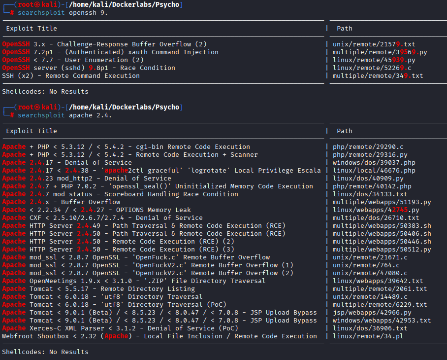 Analizamos de forma rápida con searchsploit si para esos servicios y versiones exite algún exploit público que nos ayude con la explotación.