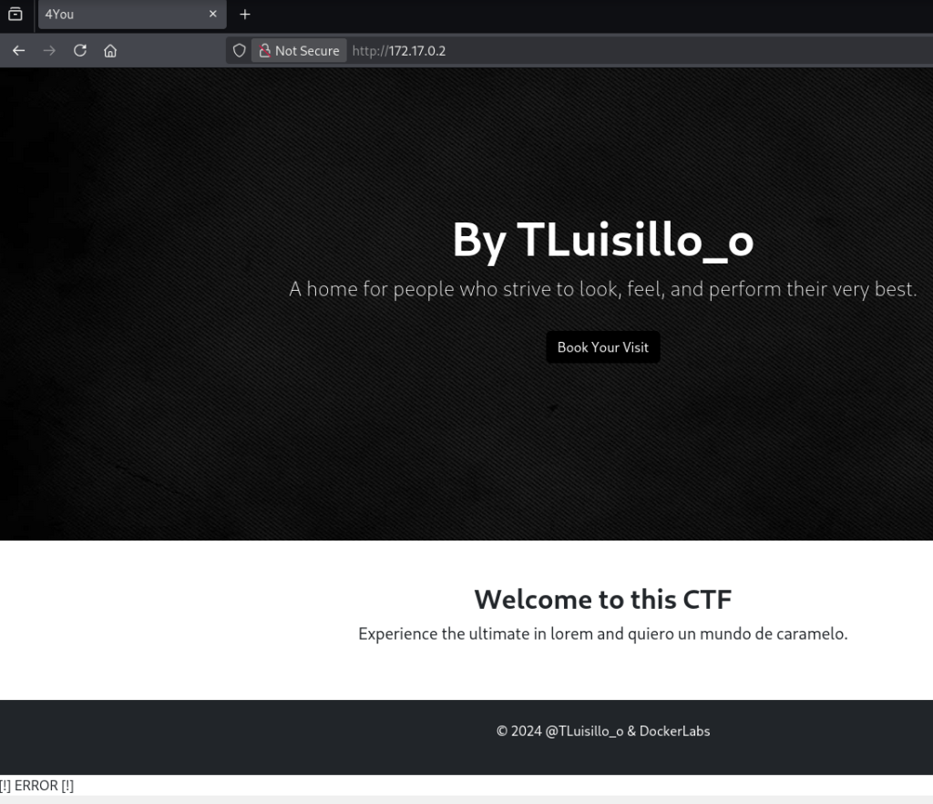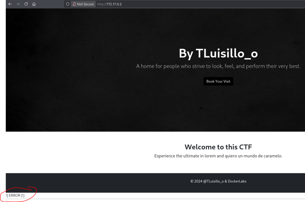 Veo que los enlaces internos son url con referencia a la misma página, no útiles. Solo veo un mensaje de [!]ERROR[!] al final de la página, que por ahora dejo en stand-by. No veo nada raro en el código fuente ni en la info básica de la página con whatweb: