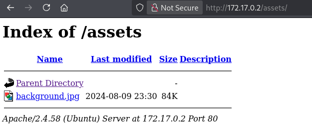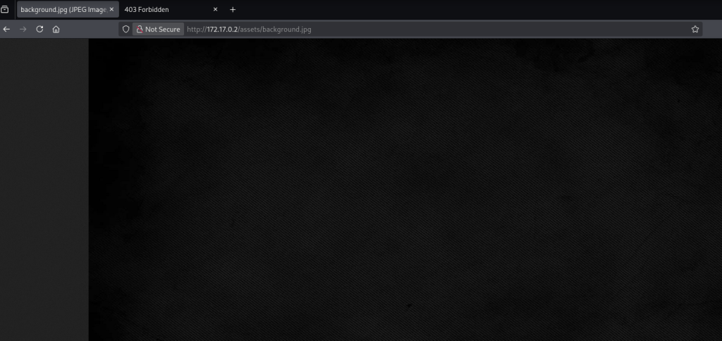 Nos devuelve tres directorios/archivos, el index.php (es la propia home de la web), /server-status (página 403 que nos da la info del servidor que ya conocemos del escaneo inicial), y por último tenemos el /assets , que nos muestra una imagen en jpg que si la abrimos es totalmente negra.