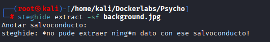 No veo nada de información relevante, uso la herramienta de «steghide» como método de esteganografía para extraer algo de info pero nos pide una contraseña que no tenemos…