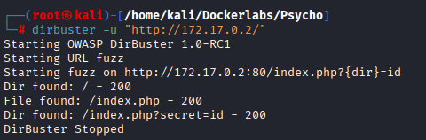 Es decir, la URL http://172.17.0.2/index.php?secret=id parece ser reconocida por la aplicación.