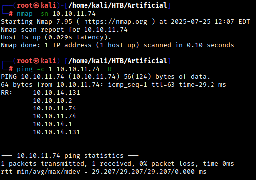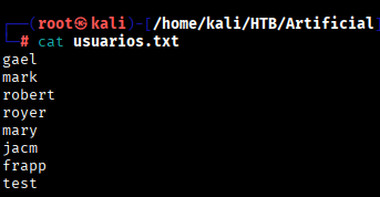 vamos a ejecutar este código dentro de nuestra carpeta de la máquina /HTB/Artificial para activar el contenedor de Docker: