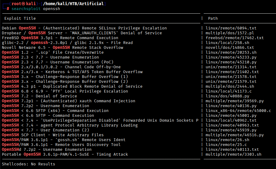 Revisando en searchsploit por la versión de OpenSSH, no vemos ningún exploit documentado públicamente: