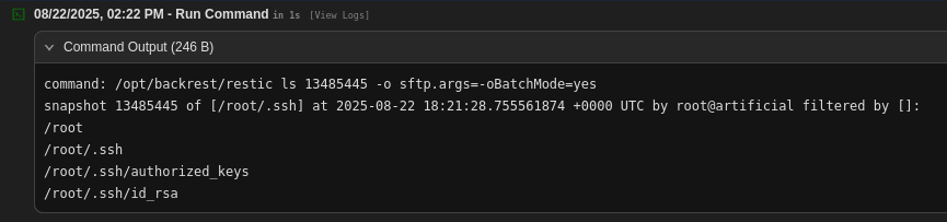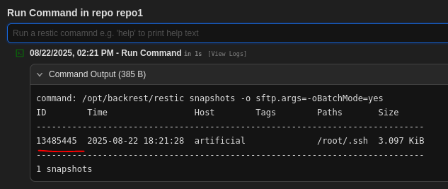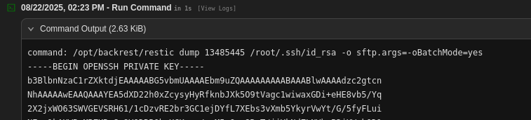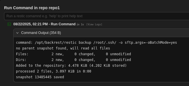 *Esto forzó que Backrest/restic creara un snapshot (una copia de seguridad) del directorio SSH de root, donde suelen estar las claves privadas necesarias para acceder por SSH como root.
