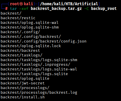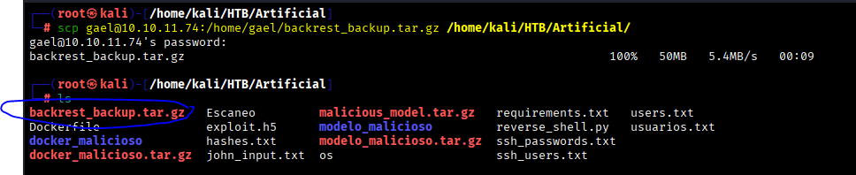 scp gael@10.10.11.74:/home/gael/backrest_backup.tar.gz /home/kali/HTB/Artificial/
