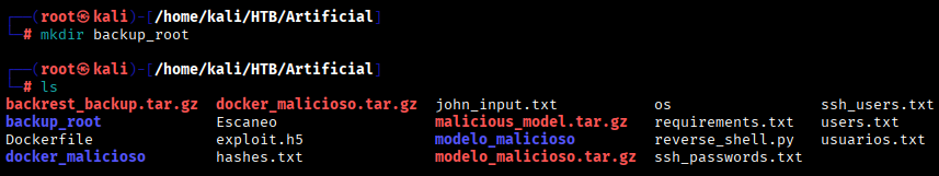 Esto nos generará un fichero dentro de HTB/Artificial llamado «exploit.h5» que será el fichero que subiremos a la plataforma.