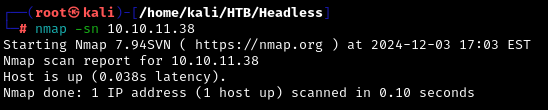-sn : realiza un Ping Scan para verificar que el host está activo sin intentar descubrir puertos.