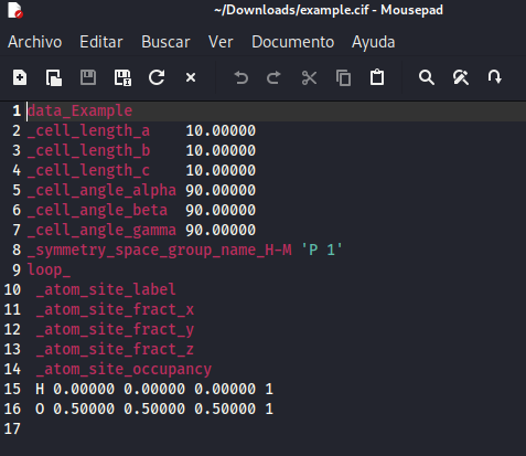 Si hacemos click sobre el ejemplo que mencionan «here» vemos la estructura que debe llevar el archivo CIF: