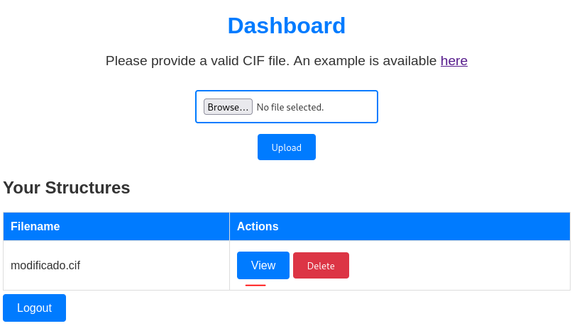 Vamos a probar si añadiendo líneas irrelevantes o mal formateadas al archivo CIF y subiéndolo de nuevo, el servidor responde de alguna forma.