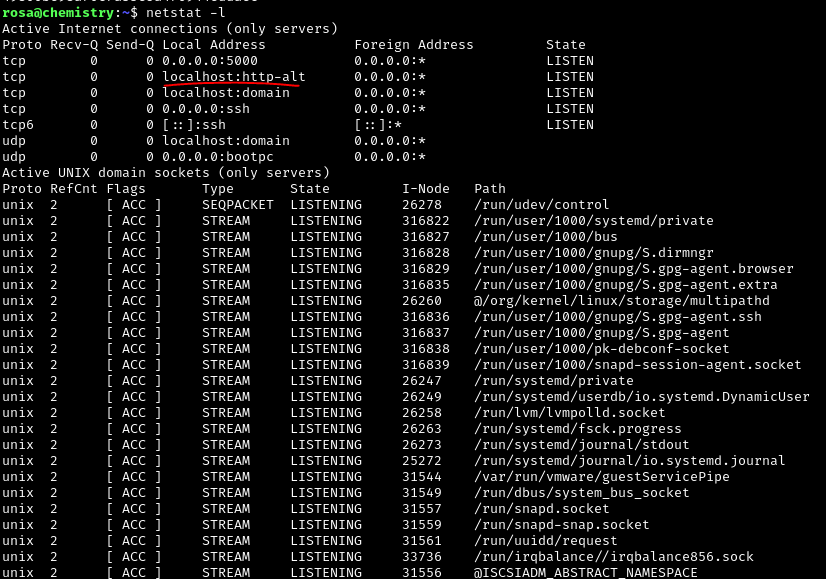 Una vez estamos dentro del servidor víctima, vamos a ver qué servicios están corriendo mediante el comando netstat -l