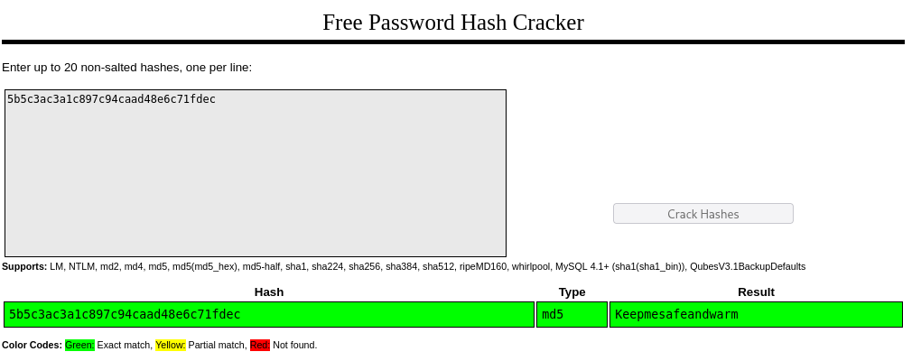 Probamos con Crackstation la ruptura de esos hashes para esos usuarios: