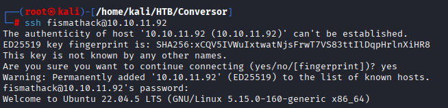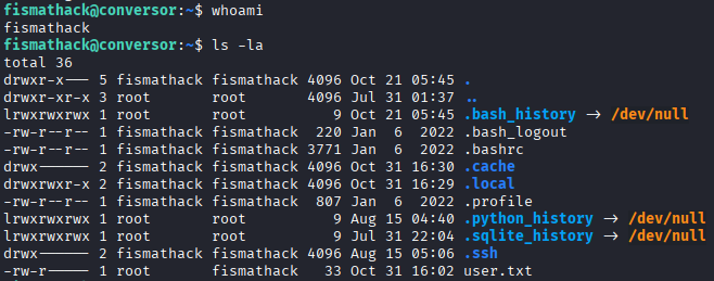 Probamos con el usuario fismathack y efectivamente entramos, pudiendo acceder a la user.txt flag: