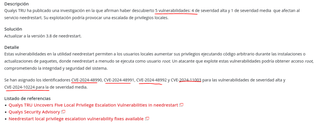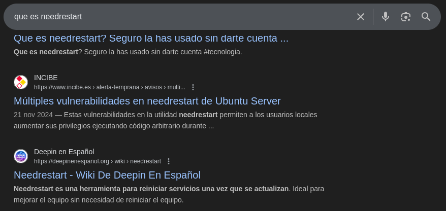 Al hacer una búsqueda en Google, vemos que existen múltiples vulnerabilidades asociadas a needrestart: