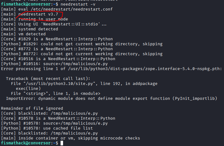 comprobamos qué versión de «needrestart» es la que nos reporta la consola para poder ver qué exploit se podría aplicar, y nos confirma que es la versión v3.7: