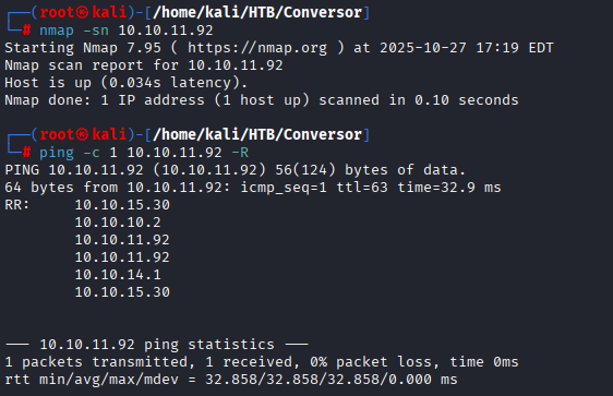 Antes, a mi me gusta asegurarme que efectivamente la máquina víctima está activa y ante qué sistema operativo (OS) nos enfrentamos. Para ello, ejecutamos los siguientes comandos:
