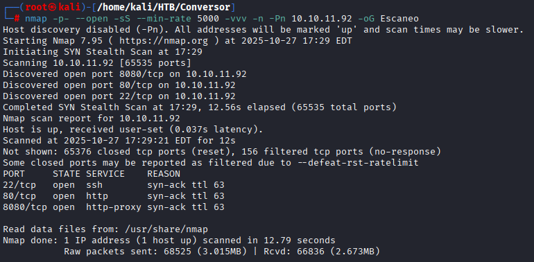 nmap -p- --open -sS --min-rate 5000 -vvv -n -Pn 10.10.11.92 -oG Escaneo