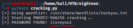 Hasta ahora, hemos aprovechado MSSQL para extraer credenciales cifradas de la aplicación web. Nuestro siguiente paso será descifrar estos hashes para obtener contraseñas en texto claro.