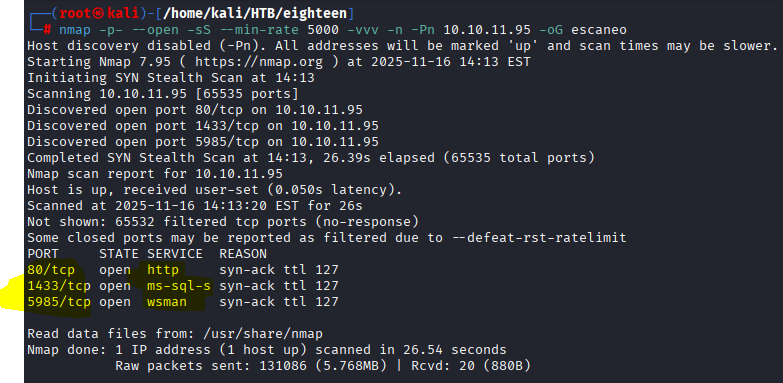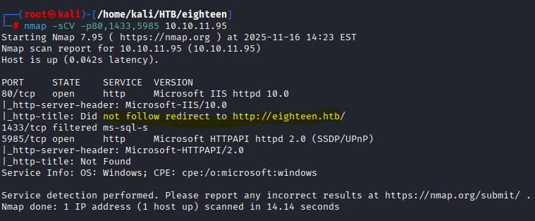 nmap -sCV -p80,1433,5985 10.10.11.95