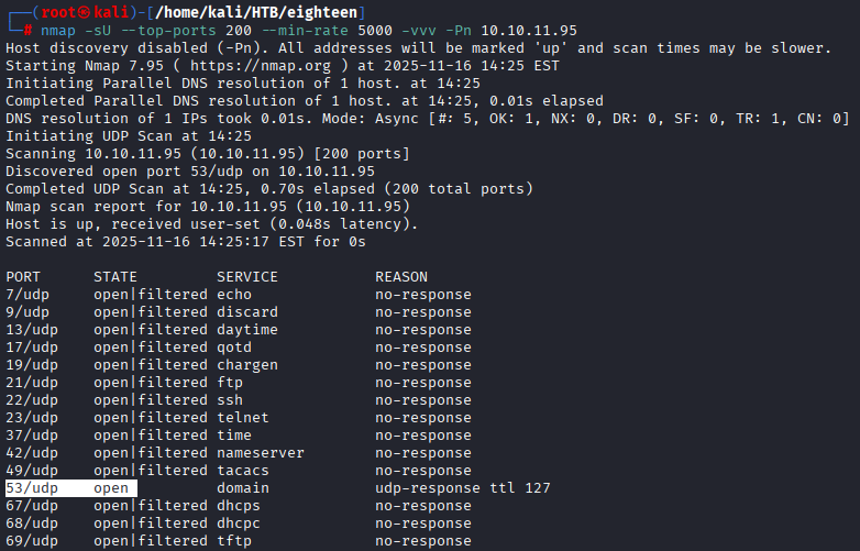 nmap -sU --top-ports 200 --min-rate 5000 -vvv -Pn 10.10.11.95