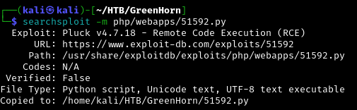 Si analizamos la versión del CMS para ver si hay exploits, vemos que efectivamente existe un exploit RCE (Remote Code Execution)