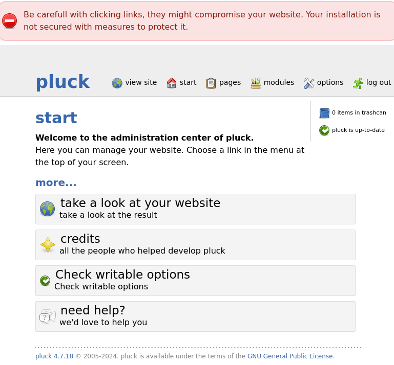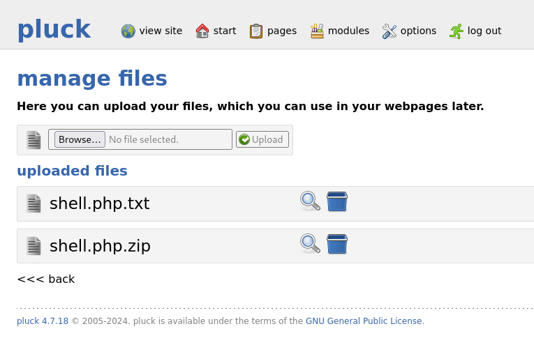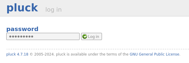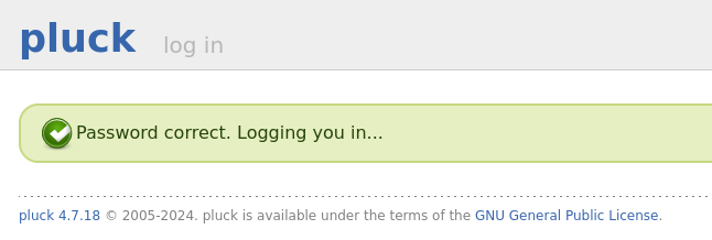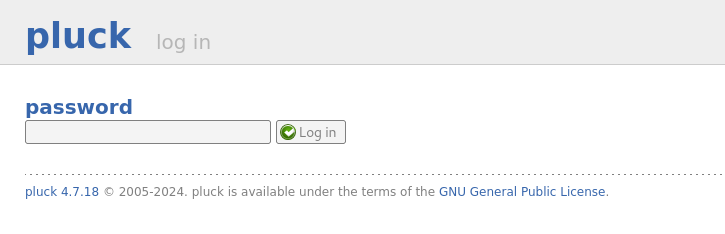 Y accedemos a un panel de un CMS llamado «Pluck» con la versión 4.7.18: