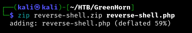 Ahora empaquetaremos el fichero reverse-shell.php en un archivo .zip para poder subirlo a su servidor: