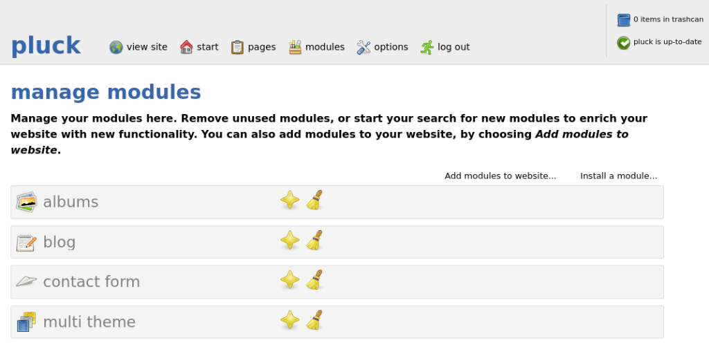 Vamos a la parte del CMS llamada – Options – Install a Module