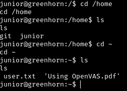 y moviéndonos dentro del usuario junior y yendo al directorio home/junior: