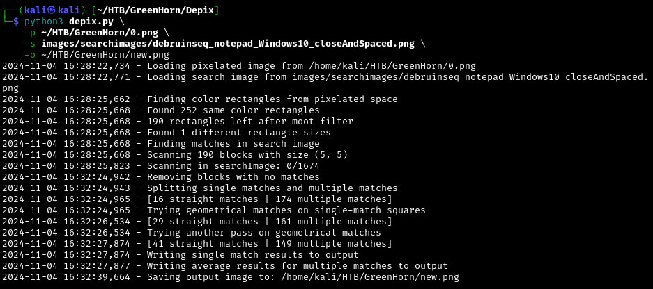 Una vez clonado, vamos dentro de la carpeta del repositorio clonado Depix y ejecutamos el siguiente comando modificando las rutas de la imagen de entrada y de salida: