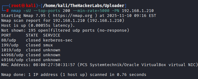 sudo nmap -sU --top-ports 200 --min-rate=5000 -PN 192.168.1.210