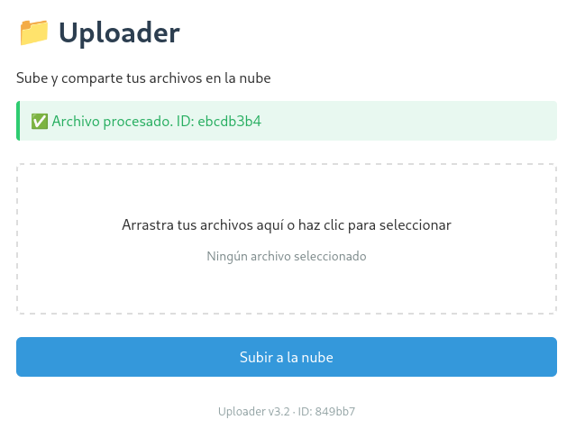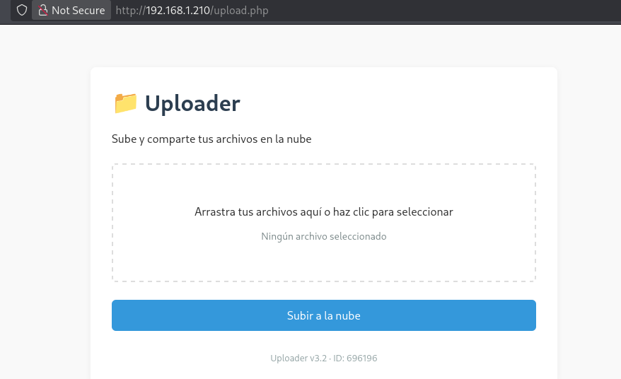 Por lo que vamos a ir a la IP en el navegador, y vemos una aplicación web que efectivamente nos permite subir ficheros.