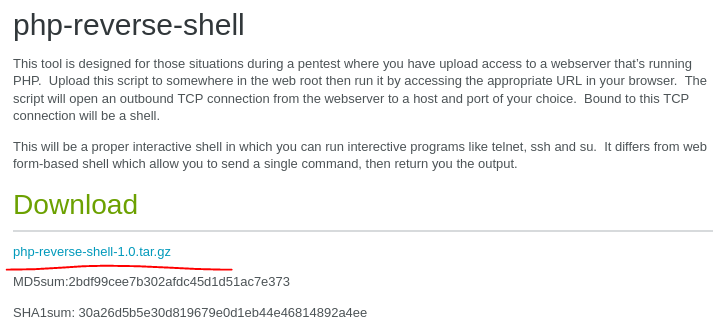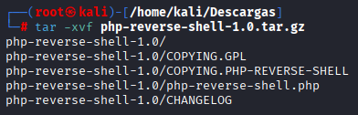 Para ello podemos ir a la página de pentestmonkey (php-reverse-shell) y descargarnos el archivo comprimido en nuestra kali y modificarlo.