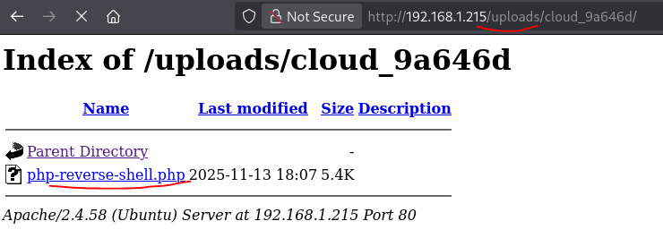 una vez tienes este php malicioso configurado con tu IP atacante y el puerto, lo que hacemos primero es ponernos en escucha por el puerto 4444 con netcat, y después, nos vamos a la web, subimos nuestro fichero php malicioso (reverse shell), lo buscamos en /uploads y lo ejecutamos … en el momento se nos abrirá la shell en netcat, confirmando la RCE.