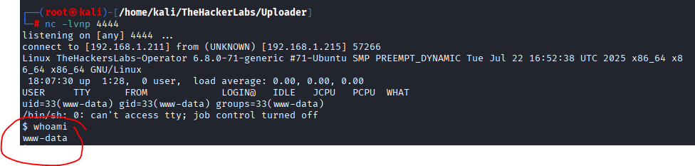 Ahora tenemos conexión con la máquina víctima como usuario www-data