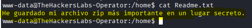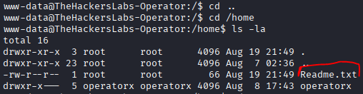 Accediendo a la home, vemos al usuario operatorx y un fichero txt Redme que dice: