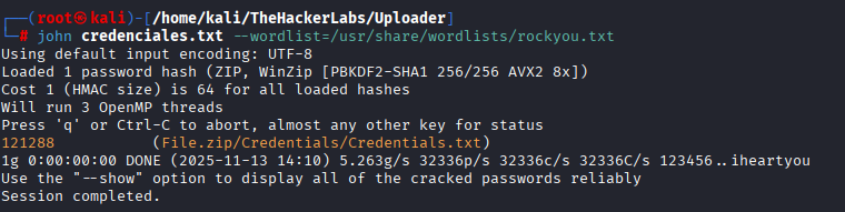 RESUMEN DE LA MÁQUINA UPLOADER DE THE HACKERS LABS