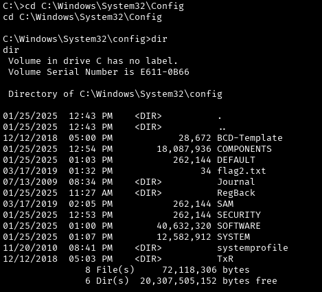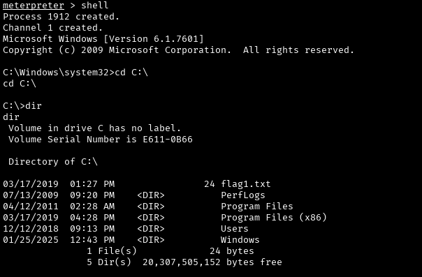Hemos obtenido una nueva shell, y además tenemos privilegios de NT AUTHORITY\SYSTEM, que es el nivel más alto de permisos en un sistema Windows. Esto significa que tenemos control total sobre la máquina comprometida. 🚀